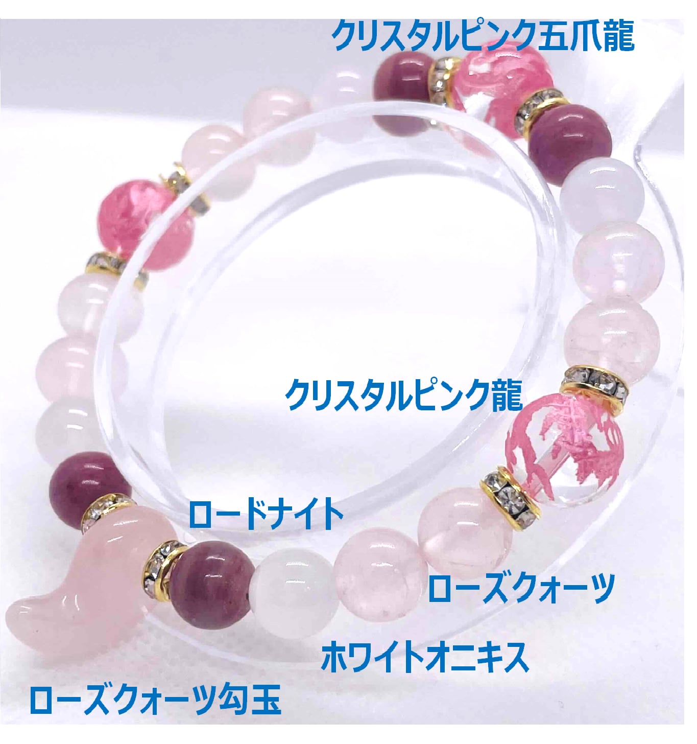勾玉:ローズクォーツ(クリスタルピンク龍・ロードナイト・ローズクォーツ・ホワイトオニキス)